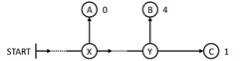 Si au premier carrefour (X), vous tournez à gauche, vous arriverez en (A) et gagnerez zéro, si vous allez jusqu’au deuxième carrefour (Y) et tournez à gauche, vous arriverez en (B) et gagnerez 4. Enfin, si vous allez toujours tout droit, vous arriverez en (C) et gagnerez 1.